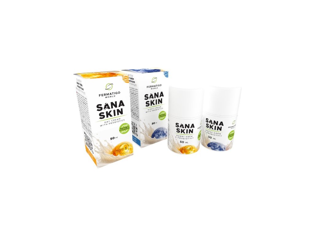 SanaSkin je moderní probiotická péče o pleť, která kombinuje denní a noční krém v jednom systému, aby pokožce poskytla přesně to, co potřebuje v různých fázích dne.