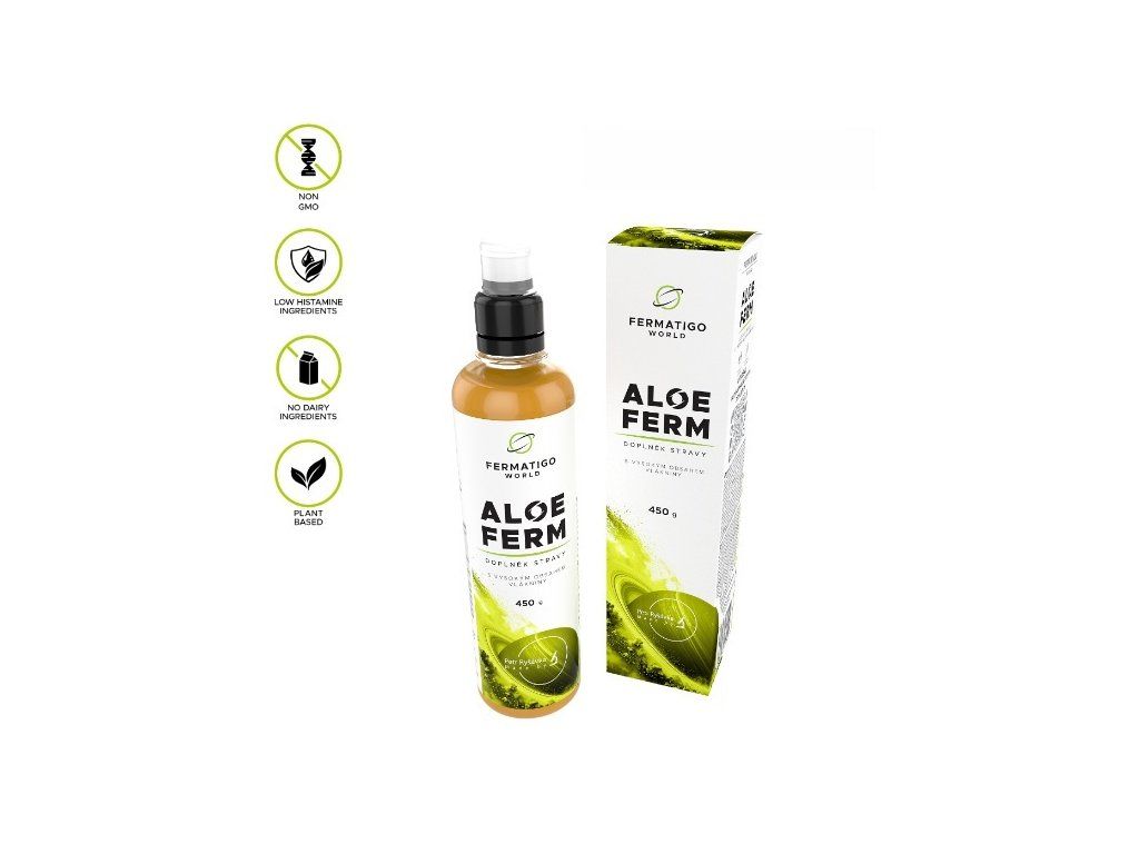 AloeFerm je doplněk stravy s vysokým obsahem vlákniny, tyndalizovaných probiotik, koncentrovaného extraktu z aloe vera, aktivních enzymů a extraktu z pšeničných klíčků. Tento jedinečný mix přispívá k regeneraci a vitalitě organismu, ochraně střevní bariéry a zmírnění těžkostí a nadýmání.